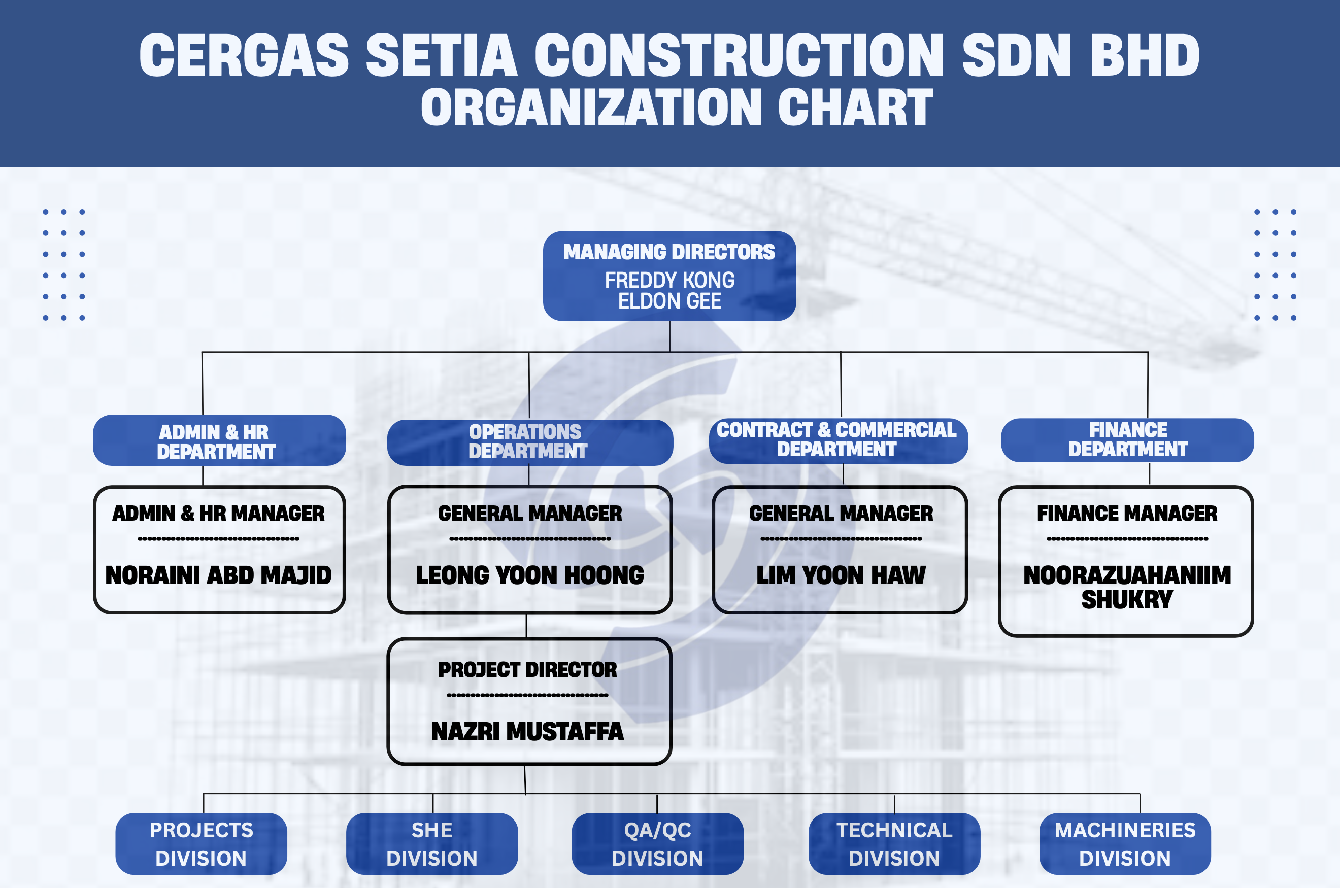 Cergas Setia Construction Sdn. Bhd., formerly known as Wai Fong E&C Sdn. Bhd., has been established since 1993. In its early years, the company primarily focused on small-scale projects. Over time, it has built a strong reputation as a well-organized engineering solutions provider, accumulating experience from various projects of varying complexity worldwide. Cergas Setia Construction is proud to have established itself as a dependable and well-structured building contractor. Today, the company has expanded its scope of work and is actively involved in numerous major public projects across Malaysia